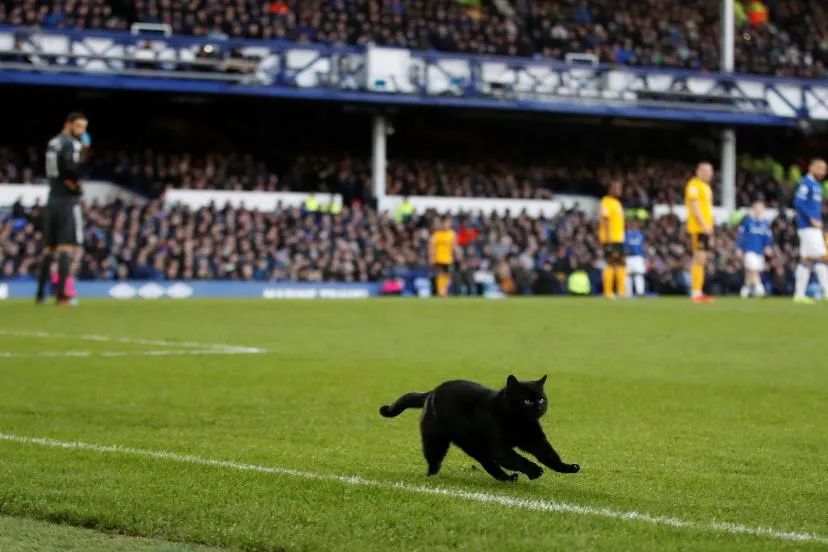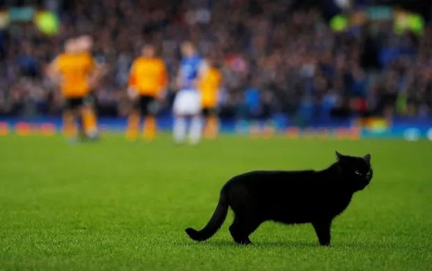 Trong khi Everton đón tiếp Wolverhampton trên sân nhà Goodison Park tại vòng 25 giải Ngoại Hạng Anh vừa đã có một tình huống hài hước xảy ra khi một “hoàng thượng” đen bất ngờ chạy xộc vào sân bóng.