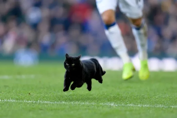 Chú mèo này rõ ràng vô cùng táo tợn, ngang nhiên đi dạo trên sân cứ như đó là sân vườn nhà nó, xem xét hết chỗ này đến góc kia, chui vào cả cột gôn và xông ra tận đường biên ở phía bên kia sân để mà kiểm tra. Thỉnh thoảng nó dừng chân, đứng xem xét và nghe ngóng tình hình, nhìn ra đám khán giả xung quanh với ánh mắt khinh bỉ không hề che giấu, rồi lại tiếp tục công cuộc phá game một cách đầy thản nhiên và bình tĩnh.