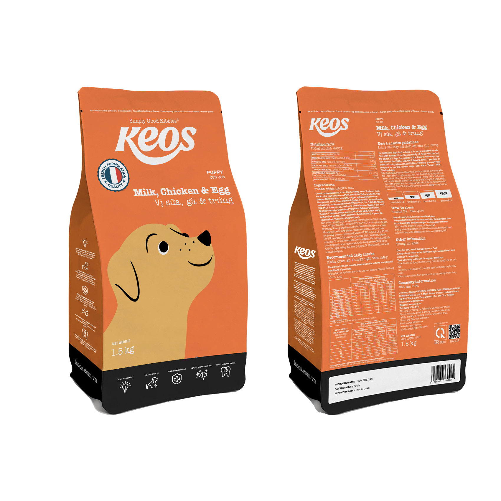 Keos – Thức Ăn Hạt Cho Chó Con – Vị Sữa, Gà Và Trứng